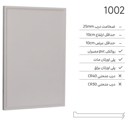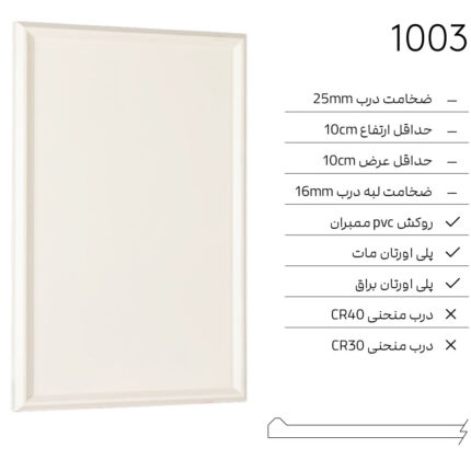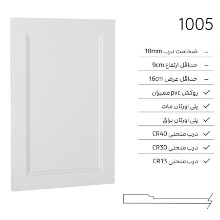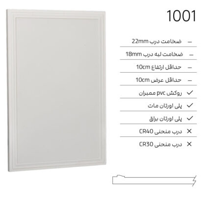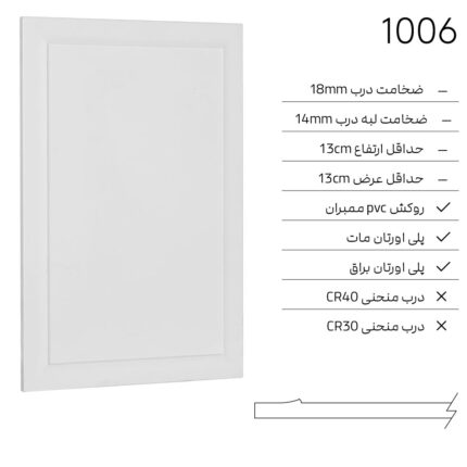 ✓ ضخامت درب 18mm ✓ حداقل ارتفاع 10cm ✓ حداقل عرض 17cm ✓ روكش PVC ممبران ✓ پلى اورتان مات