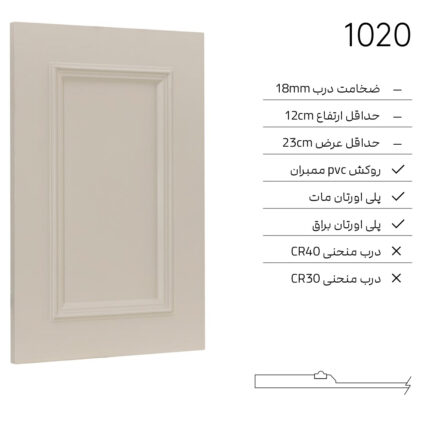 ✓ ضخامت درب 18mm ✓ حداقل ارتفاع 12cm ✓ حداقل عرض 23cm ✓ روكش PVC ممبران ✓ پلى اورتان مات