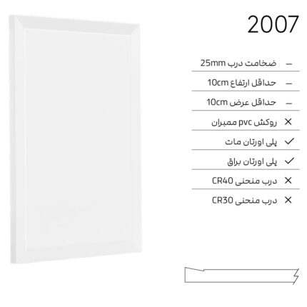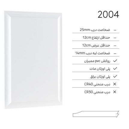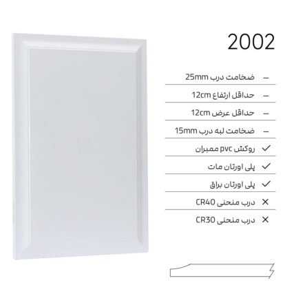 ✓ ضخامت درب 18mm ✓ حداقل ارتفاع 5cm ✓ حداقل عرض 5cm ✓ روكش PVC ممبران ✓ پلى اورتان مات