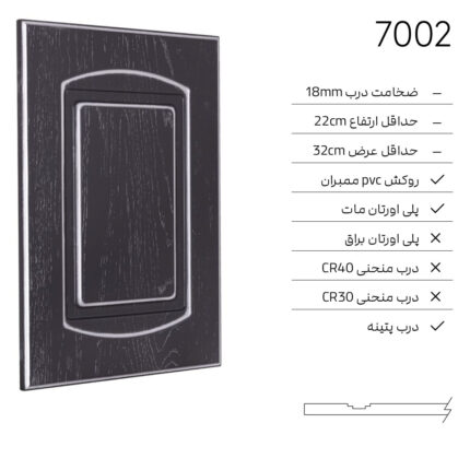 ✓ ضخامت درب 18mm ✓ حداقل ارتفاع 22cm ✓ حداقل عرض 32cm ✓ روكش PVC ممبران ✓ پلى اورتان مات